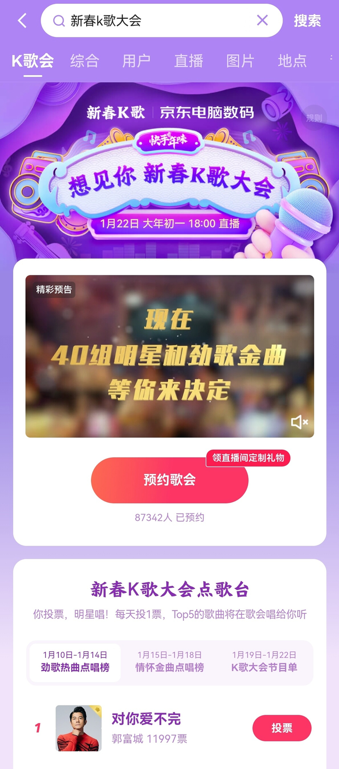 一场由用户自定义的K歌大会,歌曲投票环节已正式开放
