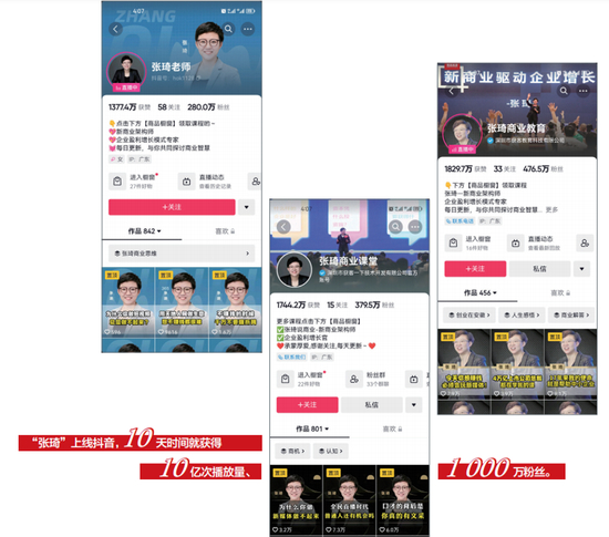 但张琦就很不一样。在短视频里,“张琦”的职务标注最多的就是“知名新商业架构师”,或者干脆没有任何头衔。