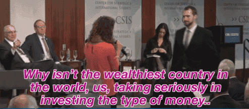 “武器制造商通过杀戮赚得盆满钵满时,美国和世界各地的人们还在挨饿,这是可耻的!我们共同的敌人是气候危机,而不是中国。”迪努奇的发言使会场气氛陷入尴尬,CSIS高级顾问马克·坎奇安坐不住了,问她到底有没有问题要问。