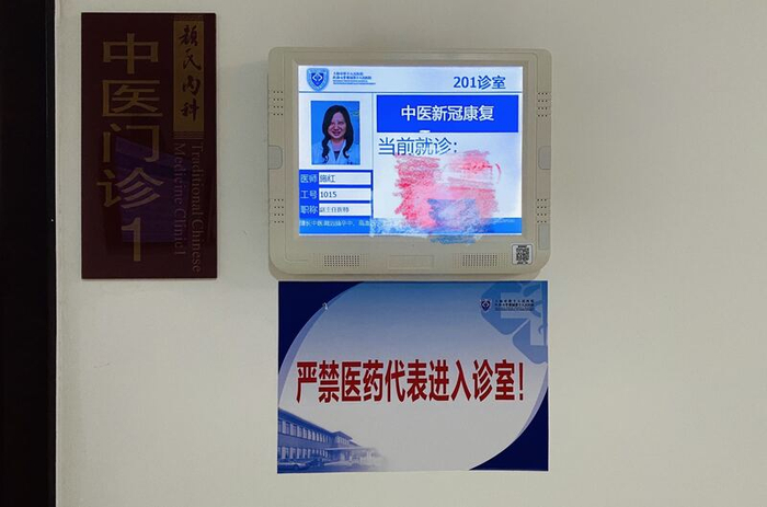 “中医新冠康复门诊”诊室外 侍佳妮摄十院“中医新冠康复综合门诊”实行“一号通用”,即挂一个普通专病号,就可以在同一诊疗区域内,得到高年资中医内科及针推医师的综合治疗服务。记者跟随43岁的华女士体验了“一号通用”。转阴近半个月,华女士仍然咳嗽、浑身疼痛,有时甚至发不出声音,严重影响工作。按照流程,中医内科医生先为她问诊、诊脉,并开具中药,随后华女士来到理疗室,针推医师吕若云询问病情和诉求后为她针灸。她说:“有时候全身都疼,不知道应该去看哪个科。我信任中医,所以来这里治疗,希望赶在春节前好好恢复一下。”理疗室内,不少患者正在接受针灸、拔罐和推拿,此外医生也会根据患者个人情况,开展耳穴、穴位敷贴、埋针等,或指导患者采用中药熏蒸、沐足、擦洗等外治疗法,针对性解决问题。60岁的严女士前天第一次前来就诊,还做了针灸理疗,昨天开始服用中药,今天来做第二次针灸。“原来心口闷得呦,气都透不过。饭也吃不下,睡也睡不着。”正在针灸的严女士说,前天做完针灸,自己就感觉好多了,吃过中药后心口也不闷了,安稳睡了个好觉。