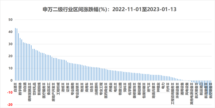 注:2022年11月以来至今各行业涨跌幅排行(截止2023年1月13日)