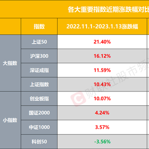 对于后市,财通证券近日指出,疫后经济的深蹲起跳+本月潜在的联储转向信号,是接下来市场全面上行的两大动力,持50过节是加强进攻的首选,节后蓝筹先搭完台,成长再唱戏,市场有望再上一层楼。招商证券则认为,短期来看,业绩预告披露是影响风格的重要变量,参考历史经验,预计今年春节前后很可能会演绎经典“从上证50到科创50”的局面。中长期而言,宏观经济和增量资金是关键,展望2023年,经济温和复苏,流动性温和改善,在产业政策和新产业趋势驱动下,小盘成长占优的概率可能更大。