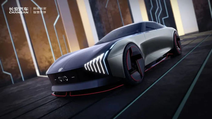 VIIA概念车是长安汽车全新设计理念“纵横万象”中体现“纵之力”的代表产品。其在外观部分采用了“气动体态”的设计,拥有锐利的鲨鱼鼻造型,看上去十分动感。