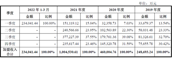 报告期内,公司主营业务收入中加盟销售收入的季节性波动情况如下: