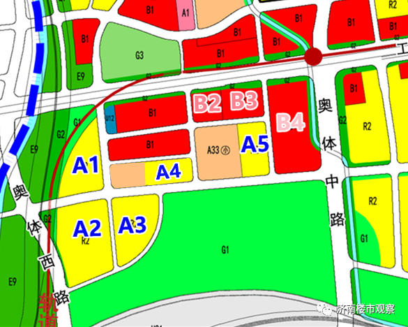 坐标工业北高架以南、黄台电厂以东,在2022年5月份,地方平台企业历城控股在这里拿下5宗宅地,分别是下图的A1、A2、A3、A4、A5地块。