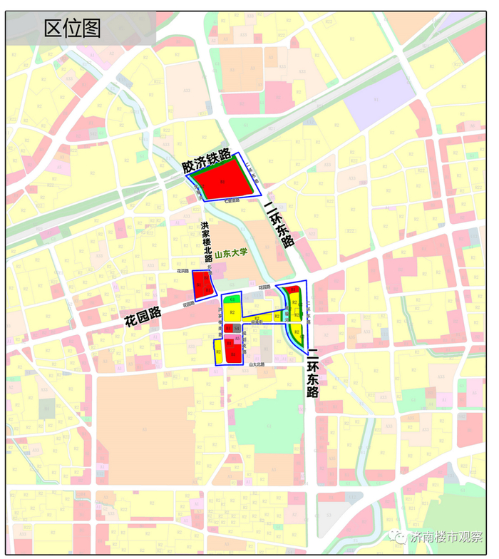 (洪家楼广场附近,调整规划的地块分布)