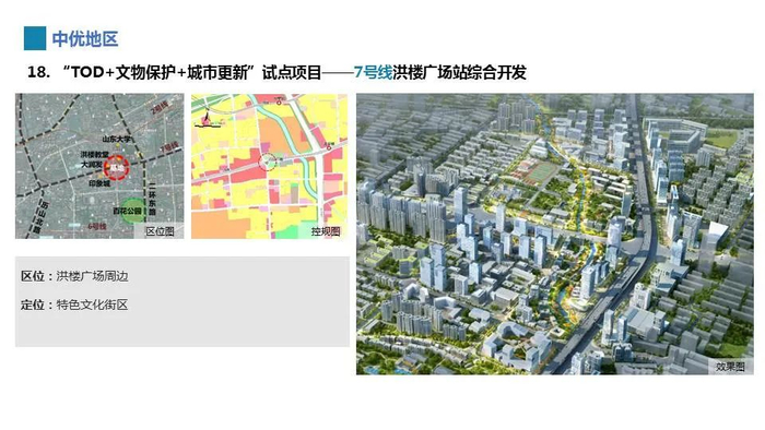 三核,在洪楼广场地铁站形成TOD文化商旅核,围绕二环东路、花园东路交汇处的洪家楼地铁站形成TOD商业商务核,围绕七里堡地铁站形成TOD智慧社区核。