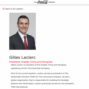小食代翻阅的彭博社资料显示,在吉路克的工作履历中,总经理任期为2012年4月至2015年4月,这正是其在可口可乐中国市场担任大客户业务总经理的期间。不过,和闻笛一样,这位新帅的作风颇为低调,在公开报道中鲜少露面。