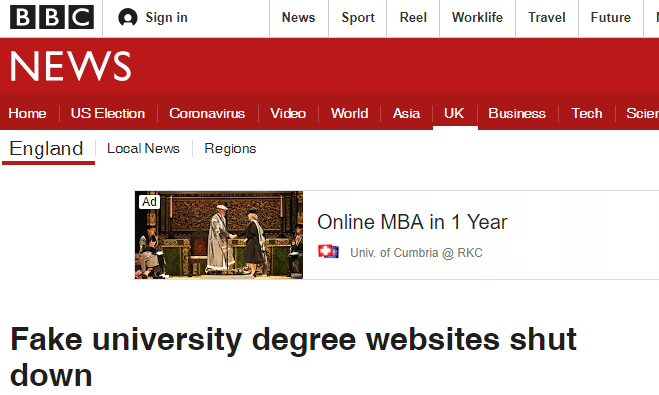 英国高等教育学位检验机构(Hedd)目前已发现有90多家类似的欺诈机构。仔细看看这些贩卖假文凭的网站,也是发现各种耍花样。