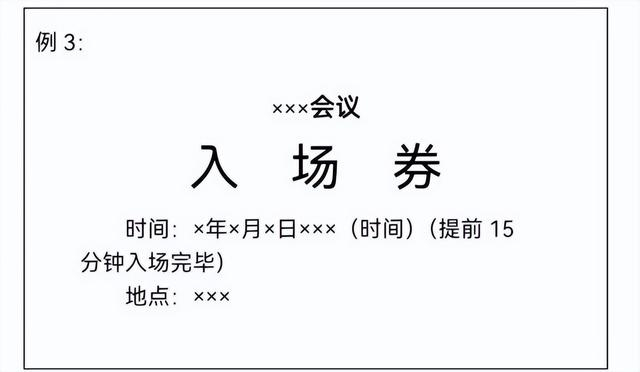 二是印制参会入场券(见例3),写明会议时间、地点,与会议通知一并发送,参会人员凭入场券进入会场。
