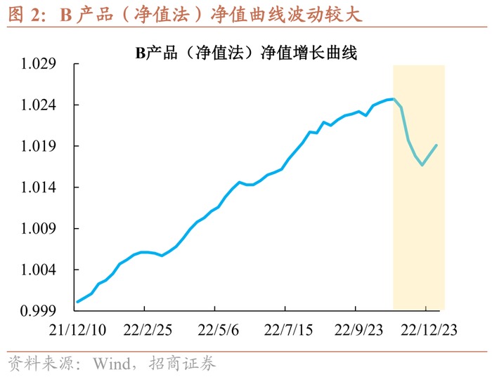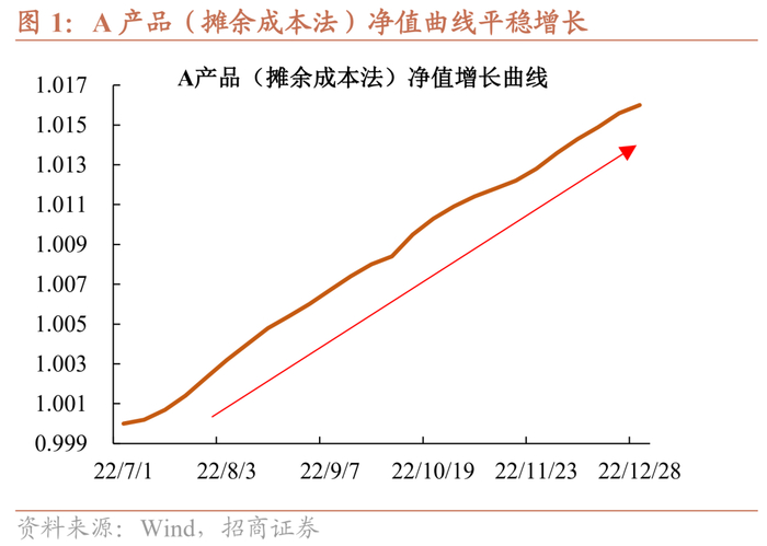 摊余成本法和净值法的区别是什么?用一个具体的例子来解释。A产品是以摊余成本法计量的封闭型理财产品,B产品是以市值法计量的开放型理财产品。从净值增长曲线可以比较直接的观察到,A产品净值呈现平稳增长;而B产品的净值曲线波动幅度较大,尤其是在11月中旬理财“赎回潮”阶段。