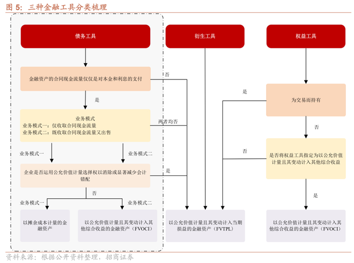 首先,先捋清金融工具三大分类。根据财政部在2017年3月31日修订发布的新金融工具准则(《企业会计准则第22号——金融工具确认和计量》(CAS 22)),将原有的“四分类”改为“三分类”,划分依据是基于“企业管理金融资产的业务模式(业务模式测试)”和“金融资产的合同现金流量特征(现金流量测试)”。1)业务模式测试主要判断金融资产所产生的现金流量是源自收取合同现金流量、出售金融资产或两者兼有,2)金融资产的合同现金流量特征是指金融工具合同约定的、反映相关金融资产经济特征的现金流量属性,判断方法也就是通过现金流量测试,即SPPI测试。