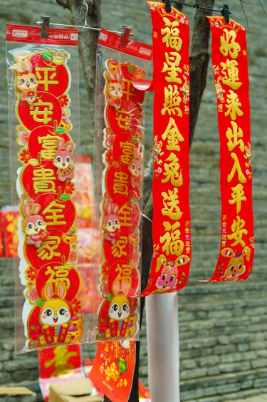 临近春节,远远就能看到闪着金光墨色的春联摊位。这几天,来采买年货的人也多了起来,几家冷冻海鲜摊位前挤满了人。岁末将至,西安市民对春节的期待,在这条窄窄的集市上凸显出来。