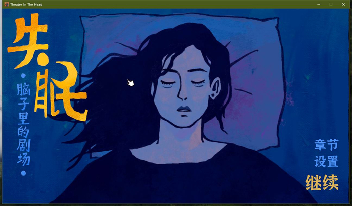 而在《失眠》游戏中,在游戏界面里找不到“退出游戏”的按键,“继续”是被高亮设置的,它提醒着我们“在场”才是常态,只有点击设置,进入二级菜单才会发现它。而游戏中的角色,在游戏开始前其实早已睡着,玩家必须要叫醒她,才能开始这场失眠的游戏。