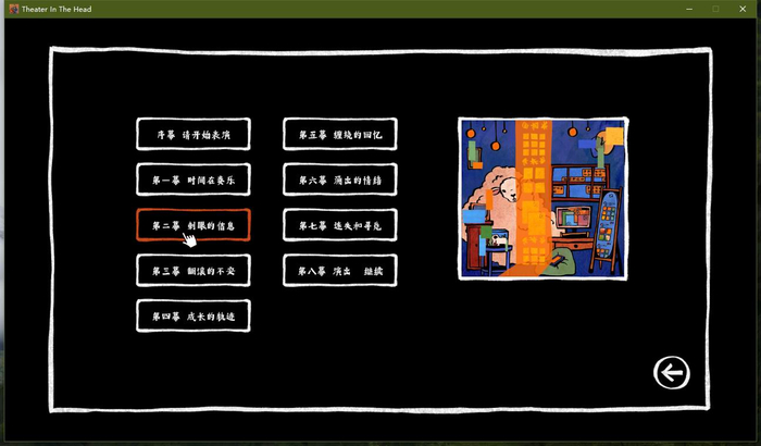 其实这一举动早就在游戏每一幕标题中出现。游戏里绝大部分标题都是相同的结构,即偏正短语“XX的XX”。在语义上,它们正是与失眠形成了对应的语言哲学关系:
