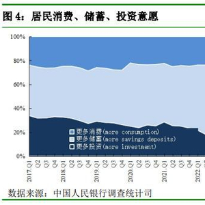 此外,2022年12月27日,央行调查统计司发布的“2022年第四季度城镇储户问卷调查报告”显示,倾向于“更多储蓄”的居民占61.8%,比上季增加3.7个百分点。