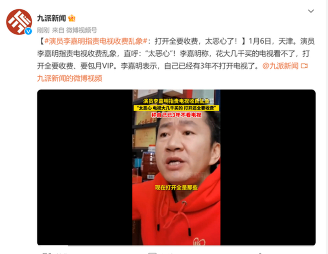 关于这一现象,国内演员李嘉明也发布视频公开指责电视收费乱象。李嘉明直言:“以前打开电视就是电视,现在打开全是收费的,我买个电视花了大几千,完了我还看不了,觉得特别恶心。” 李嘉明表示,自己已经有3年不打开电视了。