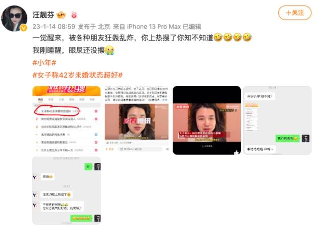 1月14日,据河北青年报援引“速看视界”报道,1月12日,北京一名42岁的女子至今未婚,坦言现在自己的状态超好,冲上热搜。
