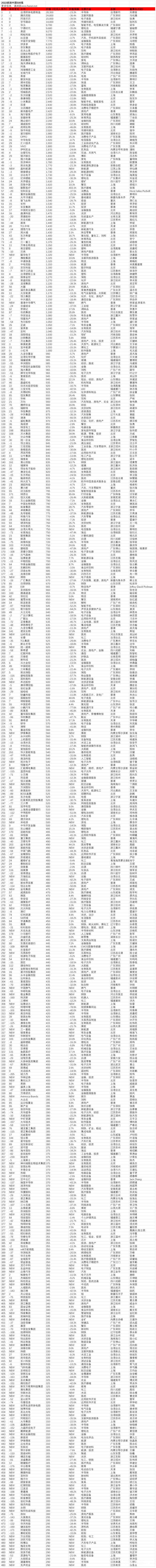 附2022胡润中国500强名单↓↓↓