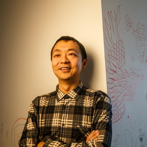 2023年1月7日,北京市房山区,蔡聪在家中。他身后的凤凰是一位朋友到访时画的。新京报记者 王子诚 摄
