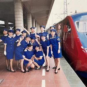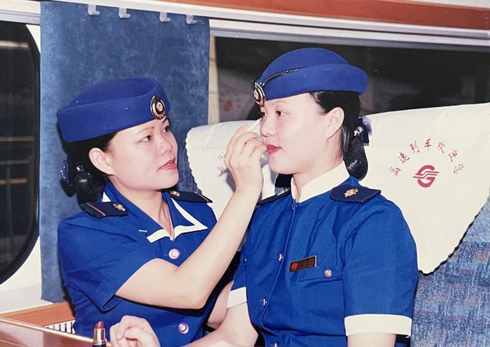 “我们车上还有投币游戏机啊!”蓝白相间的列车驶向香港红磡火车站,车上不仅加装了空调、电视,还开办了茶餐厅,提供自助餐。毕江和其他乘务员们化着淡妆,踩着半高跟皮鞋,穿着量身定制的深蓝小西装,戴上贝雷帽和白手套,为来往香港和内地的旅客提供服务。