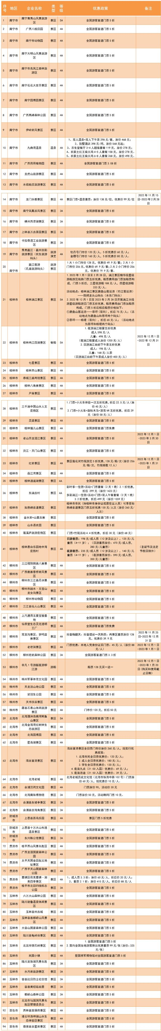 2月28日前,广西以下文旅企业对全国游客实行首道门票5折优惠政策(法定节假日除外)。