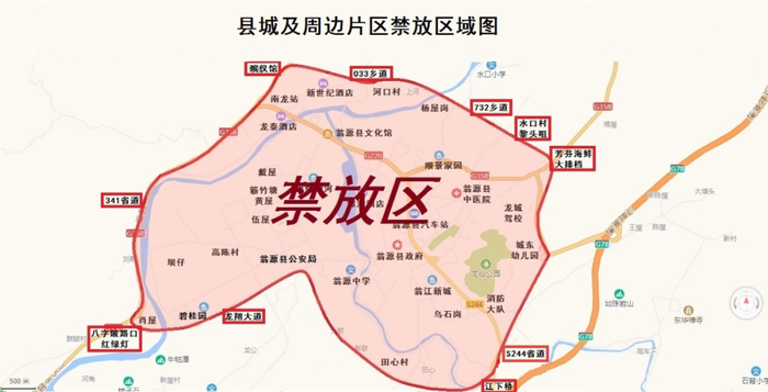 该县禁止燃放烟花爆竹区域如下: