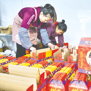 甘棠镇食品产业园内,工作人员正将“甘棠三宝”进行分装打包。