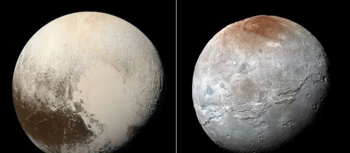 新视野号在2015年7月飞掠冥王星期间拍摄的冥王星及其卫星冥卫一的真彩色图像