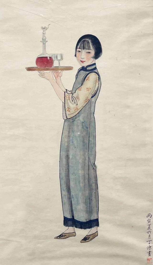 在这一时期,丁悚与沈泊尘、但杜宇还都是“美人画”的好手。他们的美人画既吸取中国传统白描画法、承袭清末吴友如开创的时尚叙事图像模式,又融入了西洋画的结构色彩,开启了后来月份牌美人画的绘画技法和审美取向。