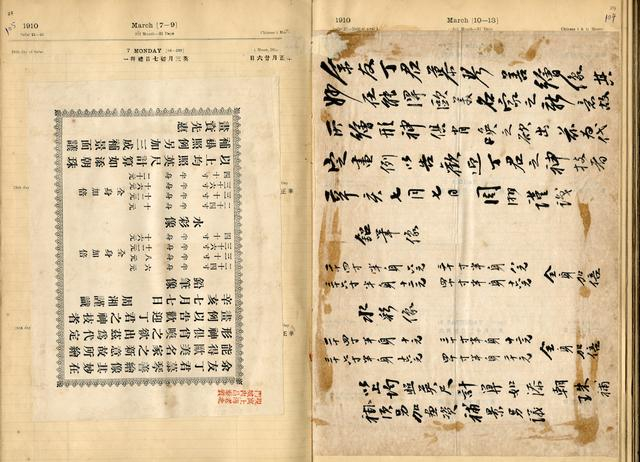 辛亥七月七日,周湘为丁悚定的画例(右),当时以此作为学业结束的标志。
