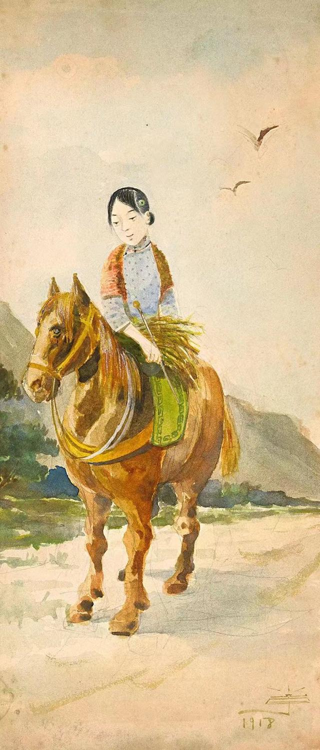 《驭马图》张光宇纸本水彩1918年33×14cm张光宇艺术文献中心藏,签名与丁悚有所联系。