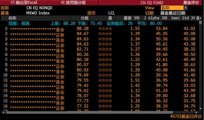 自主评分体系下,分数前列的基金