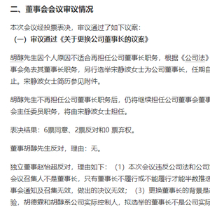 不过,这则选举除获得6票支持外,还收到2票反对。除胡醇无理由反对外,独立董事赵怡超也投下反对票。