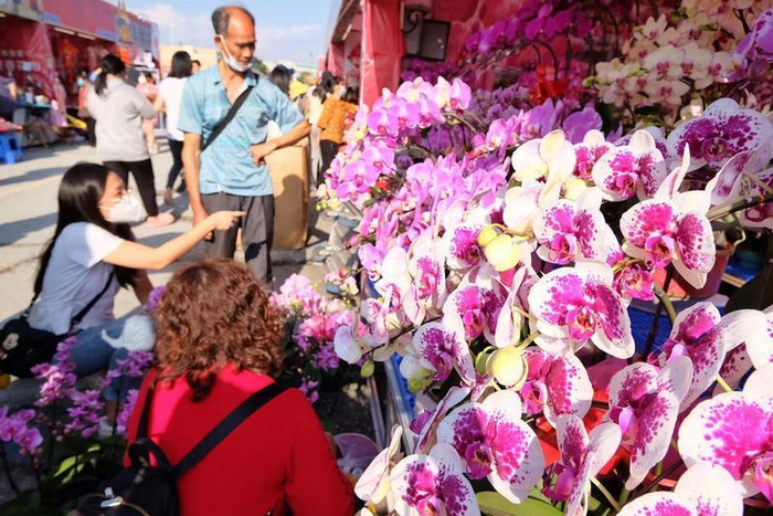 记者在花市现场感受到,浓浓的年尾已迎面而来。满眼是传统味浓的年花、挥春、对联、灯笼,以及随处可见喜气洋洋的年画、手作工艺特色小吃等,吸引市民、游客络绎不绝“打卡”、选购。现场,还有汉服爱好者特意身着古典、精致的汉服,前来和年花合影。