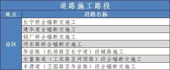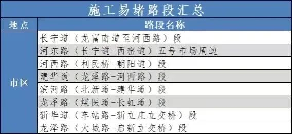 市区施工路段周边道路预计将出现不同程度拥堵,请广大市民注意避开。