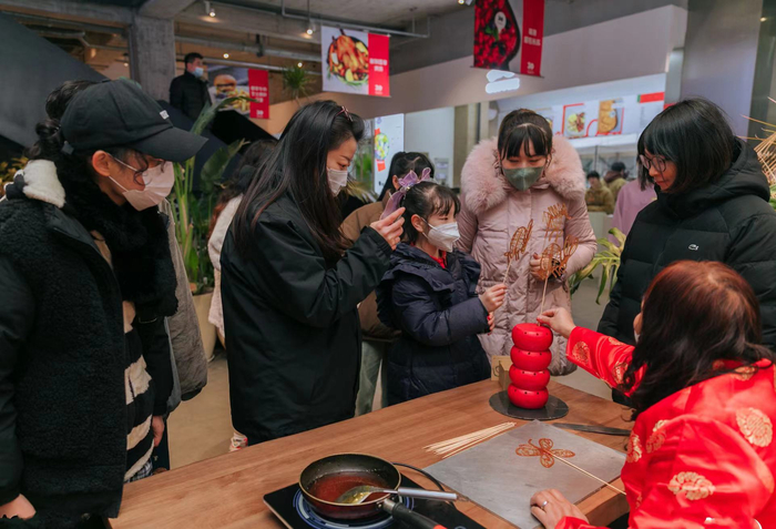 据介绍,临近春节,荷叶地街道在走访企业过程中深入了解企业经营情况,主动对接发展需求,与大象哆街区共同谋划了此次新年特色年俗活动。大象哆艺术街区位于万佛湖路与绿洲东路交汇,这里融艺商一体,囊括了合肥最好的设计师、艺术家、策展人、咖啡师、买手、西点师和西厨,在合肥这座城市创造出新的结合艺术与零售的商业模范。此次打造的活动结合街区特质,内容涵盖舞狮、剪窗花、捏面人、画糖画等丰富多彩的年俗活动,市民可以现场和非遗老师学手艺,还可免费领取作品;同时,在街区室内外还设置了杂货市场、青年市集,市民可以体验潮流艺术,又可现场尽兴"淘宝"。