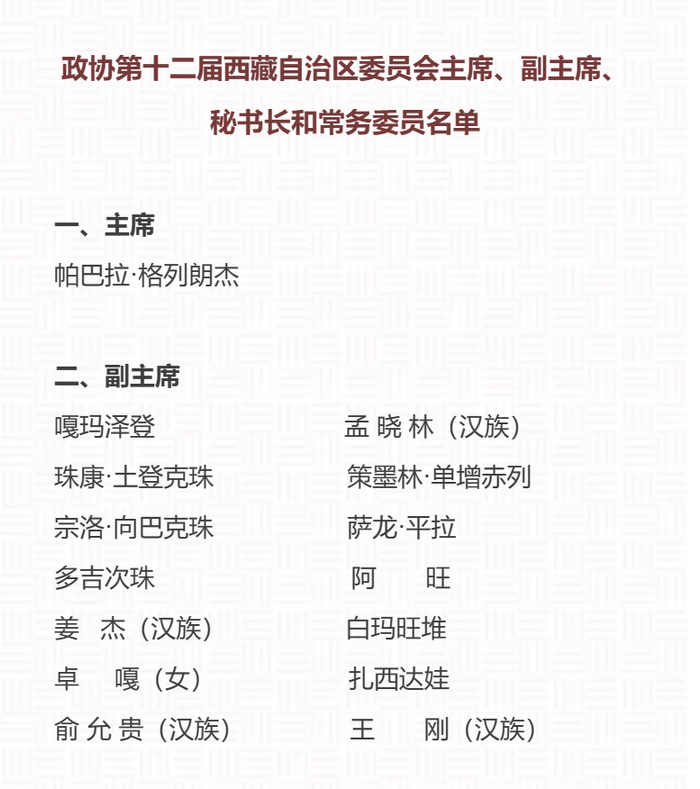 刚刚!新一届西藏自治区政协主席、副主席、秘书长产生