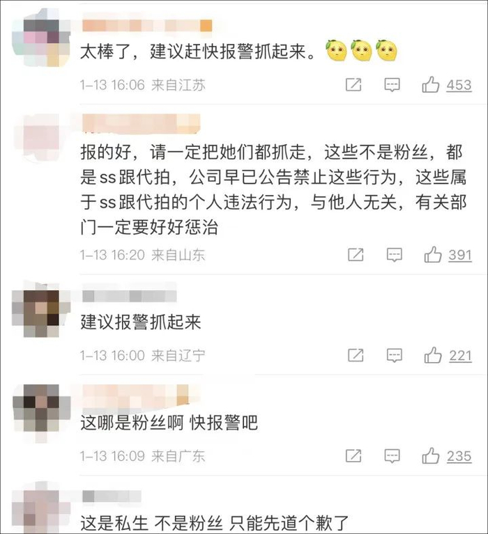 还有网友留言说:“这些是私生饭或者代拍,建议报警抓起来。”