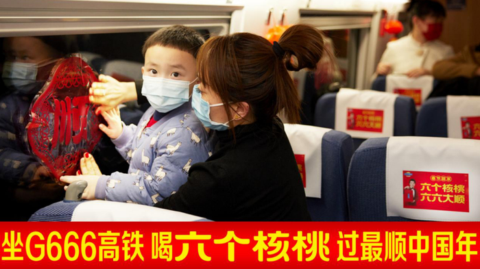 在线下,为了让更多游子顺利归家,六个核桃联合中国铁路局,与G666高铁一起打造的六个核桃爱心专列已于1月13日发车,一批在异乡打拼的游子不仅通过这趟专列顺利回到家乡与家人团聚,还在现场感受到了六个核桃带来的满满顺意。