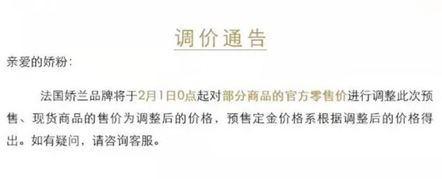 2021年年初,香奈儿、娇兰、雅诗兰黛、海蓝之谜等高端美妆品牌集体抱团涨价,其中香奈儿山茶花洗面奶从435元涨至460元,娇兰也在2月1日调整了价格。