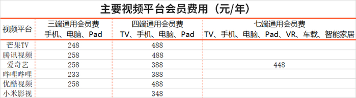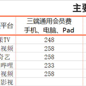 笔者查询了目前主要视频平台的年度会员费用后发现,在没有任何折扣的情况下,消费者若想在TV端投影的,仅一个渠道的视频来源就需要支付四五百元的年费,而这5个平台的会员年费合计达2240元,爱奇艺甚至推出了七端通用会员费,想在VR、车载、智能家居上播放视频的消费者需要承担更高的会员费用。
