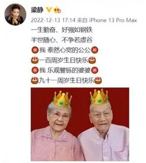 就在一个月前,管宗祥刚刚度过了自己的百岁生日。管宗祥的儿媳,演员梁静发出祝福——