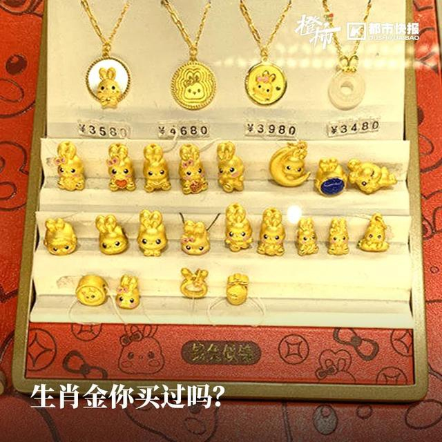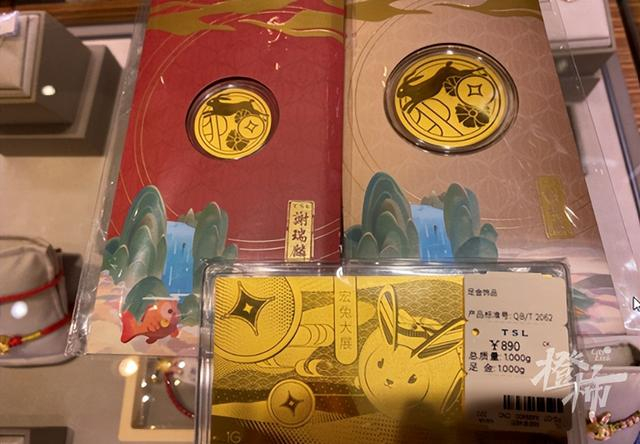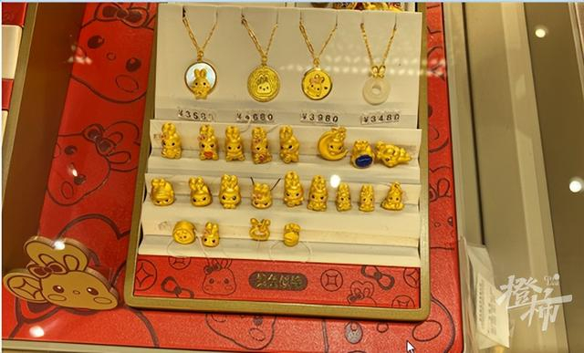除了金条金钞,和兔年有关的饰品金也颇受青睐。部分消费者用黄金替代现金,当作过年给孩子的压岁钱。
