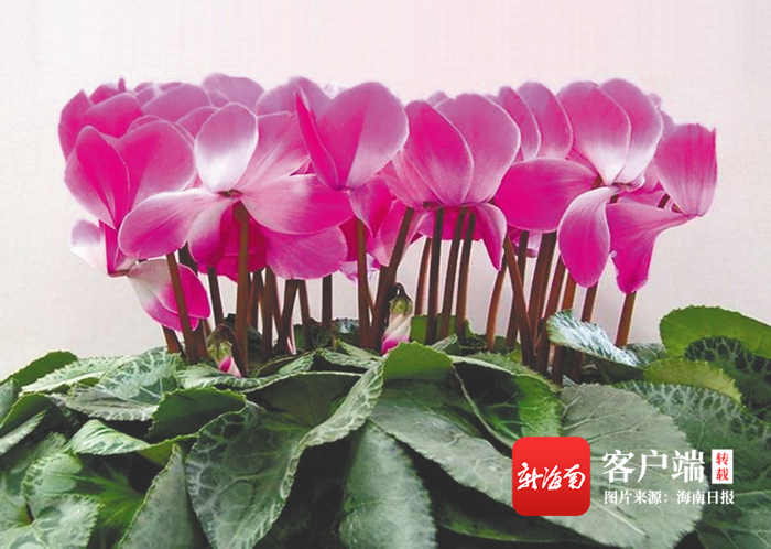 因形似兔耳而得名的,还有兔耳花,但它更广为人知的名字是“仙客来”。近日,海南日报记者在海口复兴城附近的一个花市见到了这种报春花科仙客来属植物,只见心形的墨绿色叶片由块茎顶部生出,或红或粉或白的花朵挺立在叶片上方,像兔子的耳朵,又像蝴蝶在空中飞舞。