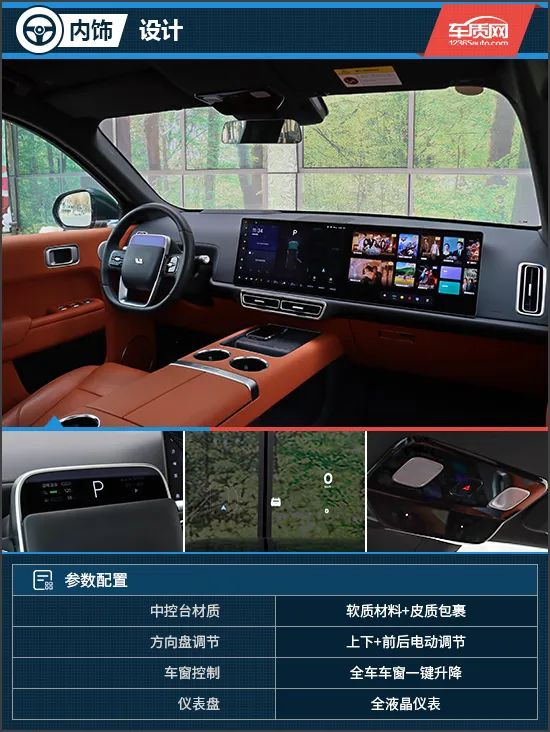 内饰设计方面,理想L9选择了做减法。整体设计依旧保持着简约的风格。同时,细节处理很有新意,比如横置小尺寸全液晶仪表支持触控,并固定在方向盘中心位置。HUD平视显示系统的尺寸达到了13.35英寸,可以显示导航以及路况监测等多种信息。此外,“双闪”的开关位于前排阅读灯区域,虽然比较另类,但适应之后还是很方便的。
