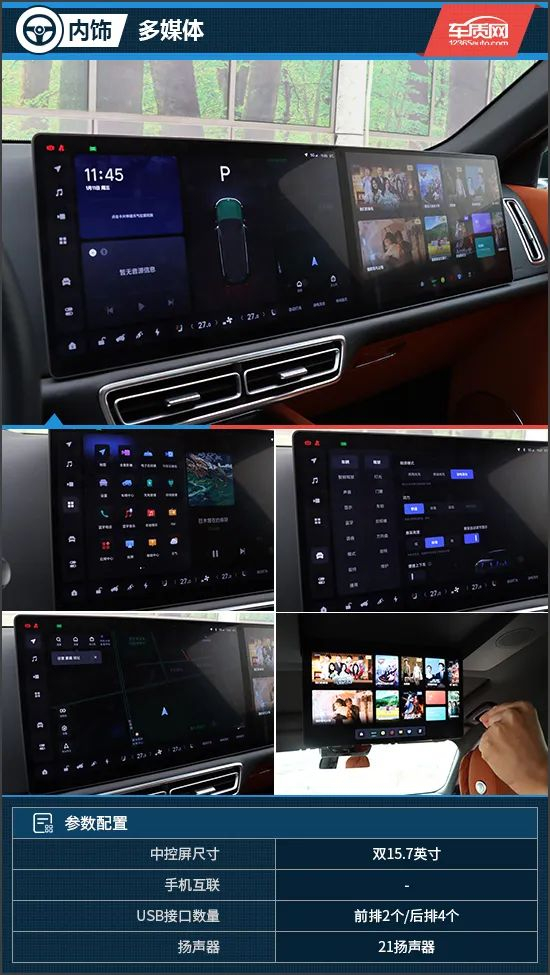 不过双15.7英寸双联屏的显示质量还是很出色的,3K分辨率+骁龙8155内核,硬件配置直接拉满,显示效果和流畅速度一流。同时,该车还为后排乘客提供了一块同样为15.7英寸3K分辨率的折叠式显示屏,并可以通过3DToF摄像头进行手势交互,操作体验十分新颖。