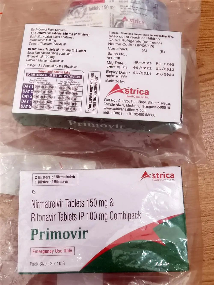 但事实上,近日多家媒体均报道称“印度产辉瑞新冠仿制药存在大量造假的现象”,尤其是绿色包装的Primovir中假货充斥。辉瑞Paxlovid中抑制病毒增殖的有效成分为“奈玛特韦”,“利托那韦”则是辅助成分。而国内销售的仿制药中,不少并无奈玛特韦成分。