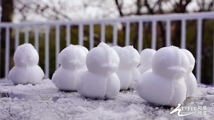 三五成群的市民流连于这醉人的雪景之中,或拍照留念,或嬉笑玩闹,更有家长带着孩子体验着雪的魅力。