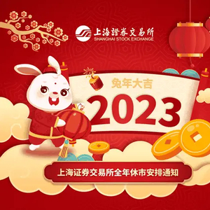 中国证监会《关于2023年部分节假日放假和休市安排的通知》(证监办发〔2022〕113号)要求,上海证券交易所现将2023年全年休市安排通知如下。